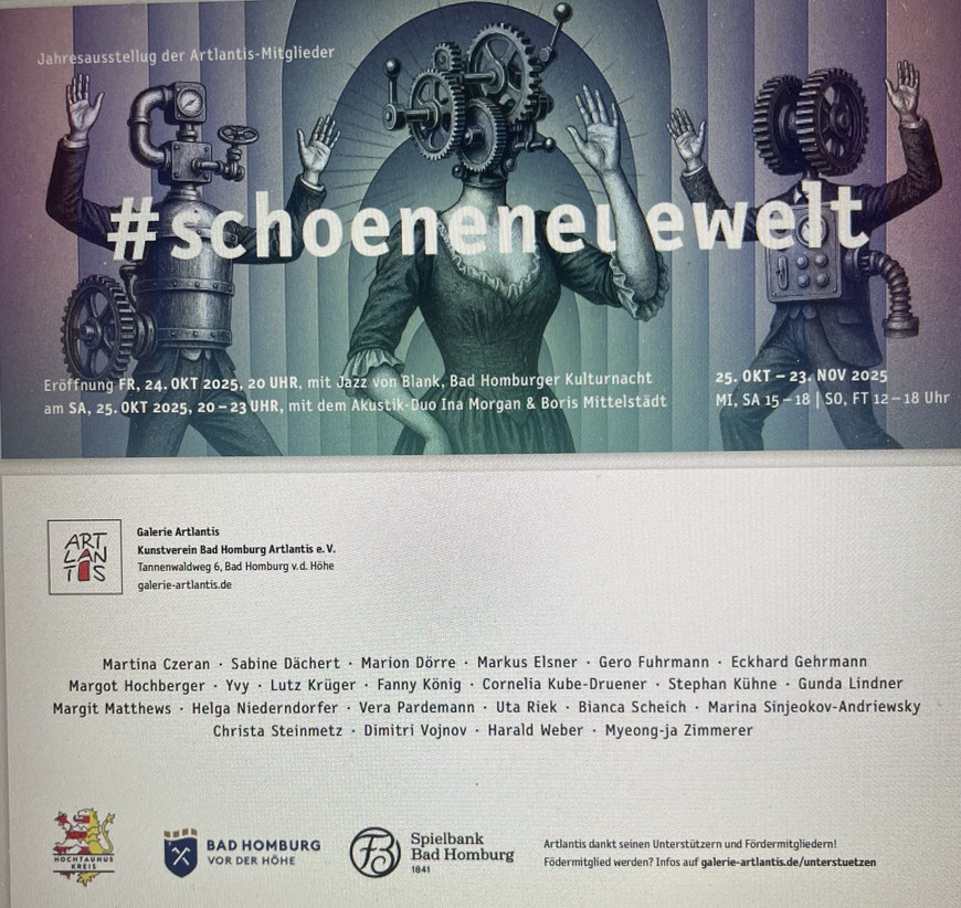 Herzliche Einladung in die Galerie Artlantis Bad Homburg , Eröffnungsfest am Freitag 24.10.25 um 20 Uhr